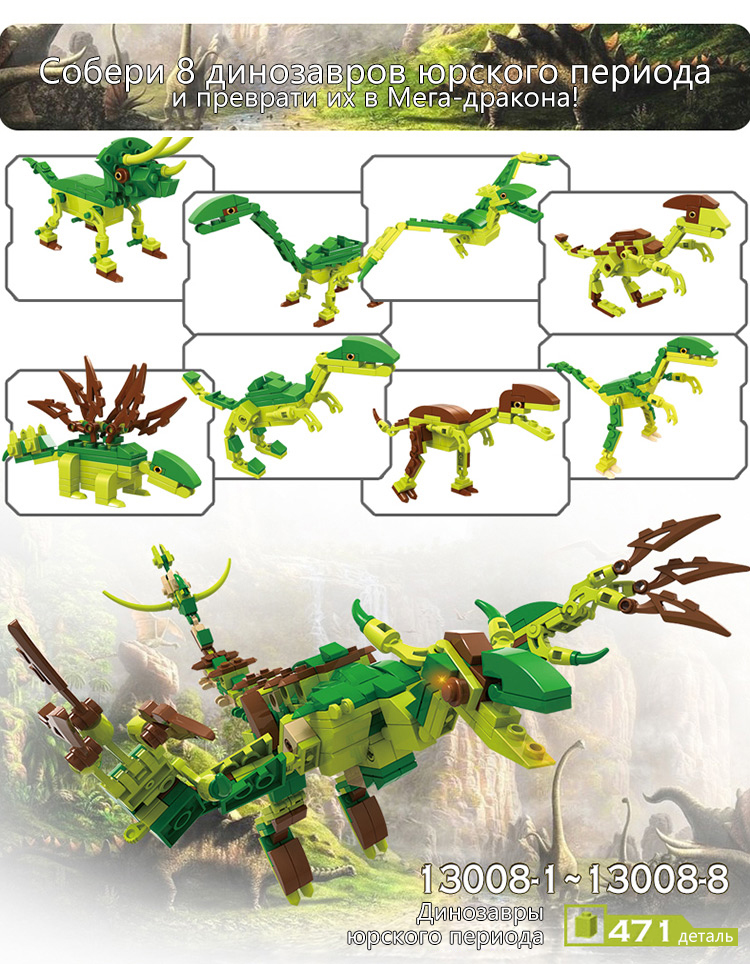 Большой набор детского конструктора "Динозавры" 471 деталь. Купон за 210 р. + доплата 980 р. вместо 3500 р., скидка 66%. |