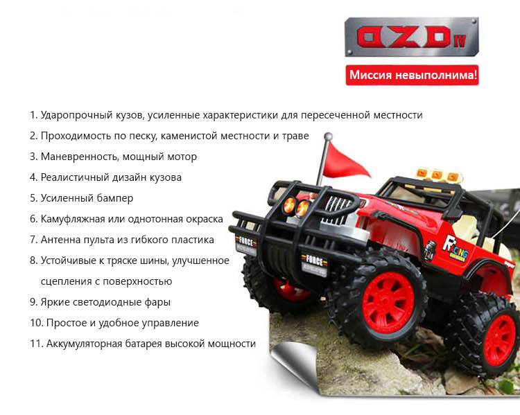 Большой радиоуправляемый джип (3 окраса). Купон за 290 р. + доплата 1160 р. вместо 3600 р., скидка 59% |