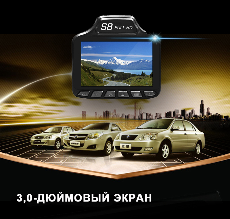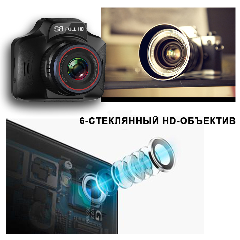 3 в 1 Blackbox S8: Встроенный GPS-трекер, Циклическая запись, G-сенсор, Микрофон, Антирадар, Отображение времени и даты.