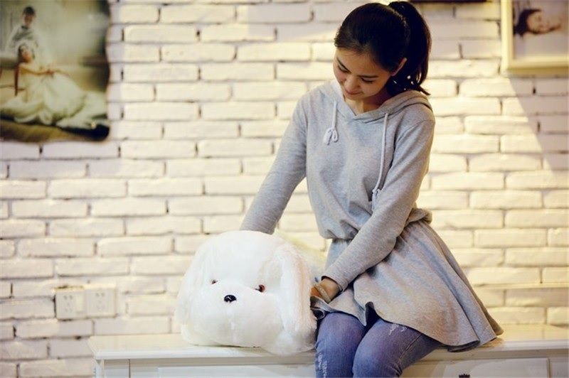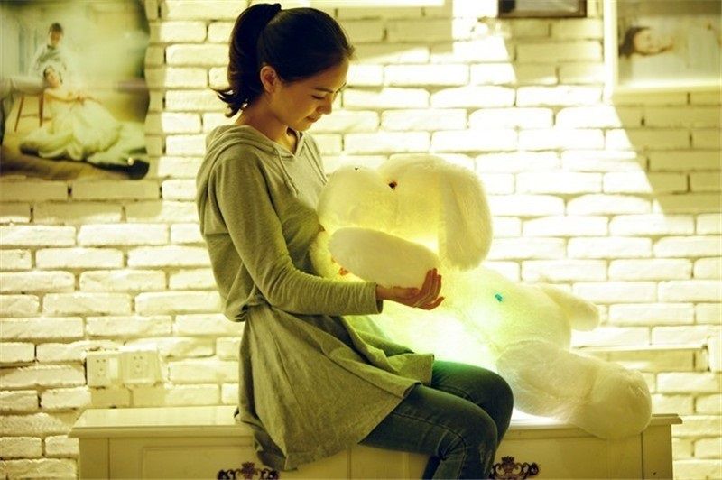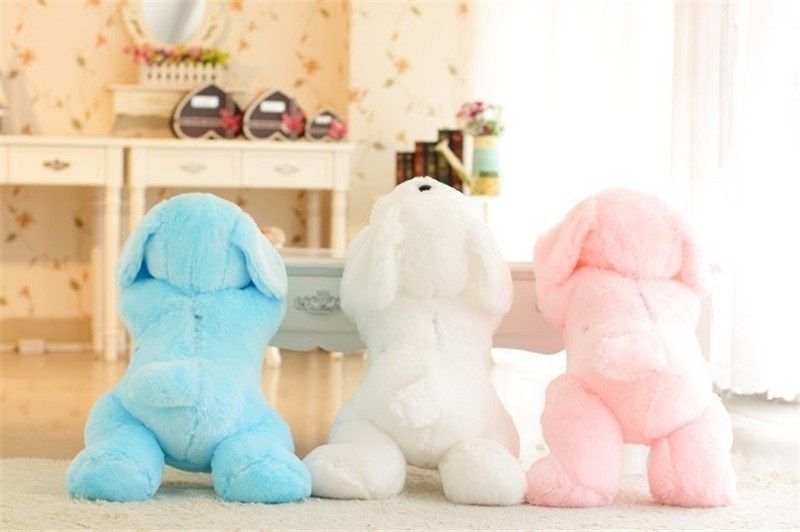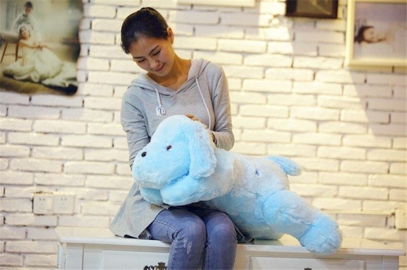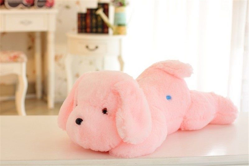 Мягкая, большая чудесная собачка ( 50 см.) подарит вашему ребенку много радости! Нажав на лапку, вы включите подсветку, и ваша собачка засияет. Цвет подсветки можно переключать ( до 8 цветов).