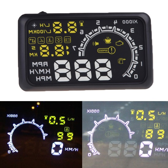 HUD проектор на лобовое стекло предназначен для предотвращения аварии,проецирует важную информацию на лобовое стекло на уровне глаз такую как: скорость,расход топлива,напряжение,дату,время,обороты двигателя,сигнал разрядки АКБ,пробег,время нахождения в пути,расход топлива на 100 км и другие параметры.