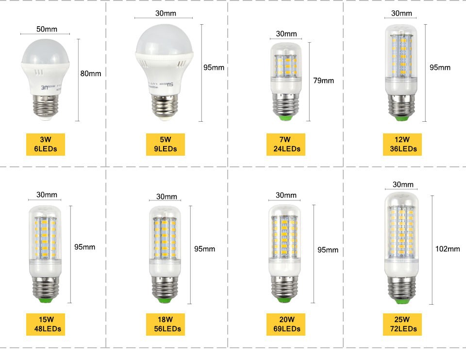 Мощность: 7W, 12W, 15W, 18W, 20W, 25W