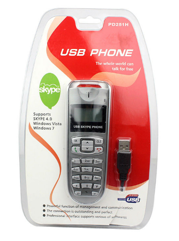 Комплексное решение VoIP: бесплатно звонить своим друзьям по всему миру Мощные функции управления и связи Поддержка Skype быстрого набора, что делает вызова очень удобными Профессиональный интерфейс поддерживает серию программного обеспечения Подавление эха и снижения уровня шума обеспечивают высокое качество связи Рингтоны с регулируемой громкостью Просто подключите USB-телефон к свободному порту USB и телефон готов к работе CD диск с драйверами включены для интеграции с Skype Не требуется звуковая карта или внешний источник питания.