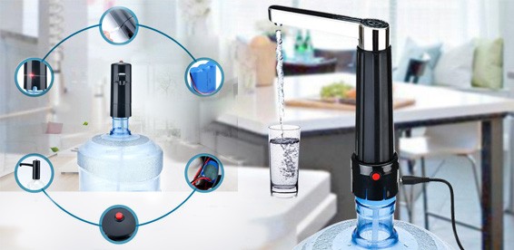 Помпа, наливающая воду нажатием кнопки. Работает от встроенного аккумулятора.