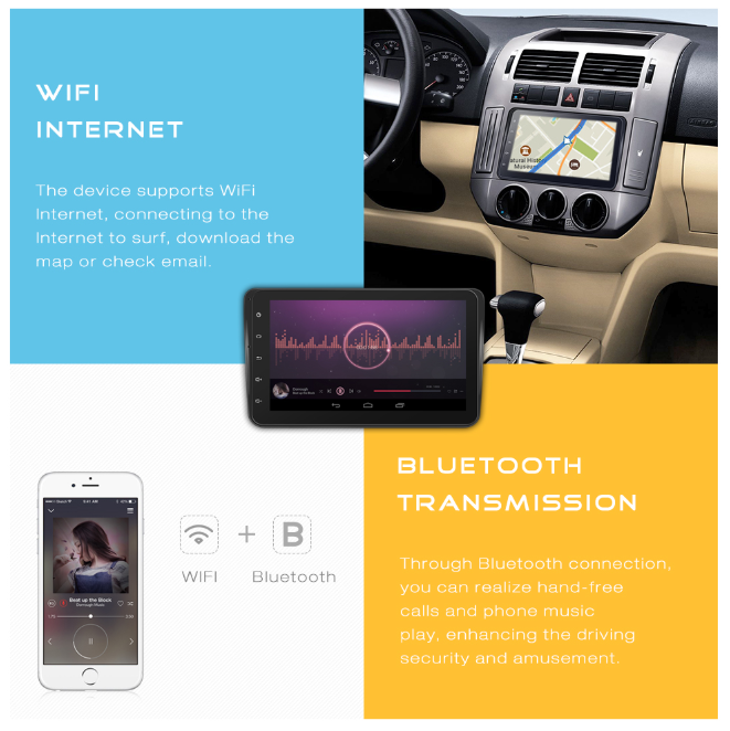 -Позволяет синхронизировать экран мобильного телефона в автомобиле через подключение их с помощью кабеля USB