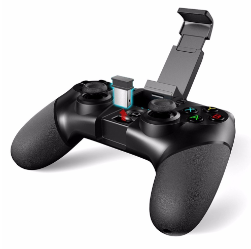 Отличительной особенностью игрового контроллера является возможность подключения не только по Bluetooth, а также по радиосигналу с помощью USB коннектора 2,4GHz. Ручки геймпада прорезинены, его удобно держать в руках.