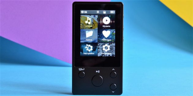 Главный экран плеера представляет из себя шесть плиток для вызова разных функций устройства. Навигация между ними осуществляется кнопками на передней панели.