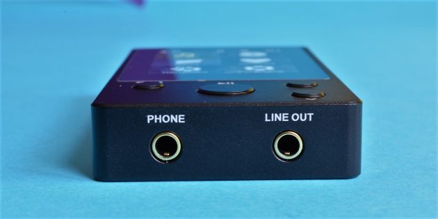 Разъём для подключения наушников находится на нижней грани плеера. Рядом разместилось гнездо Line Out, c помощью которого можно вывести сигнал на внешний усилитель.