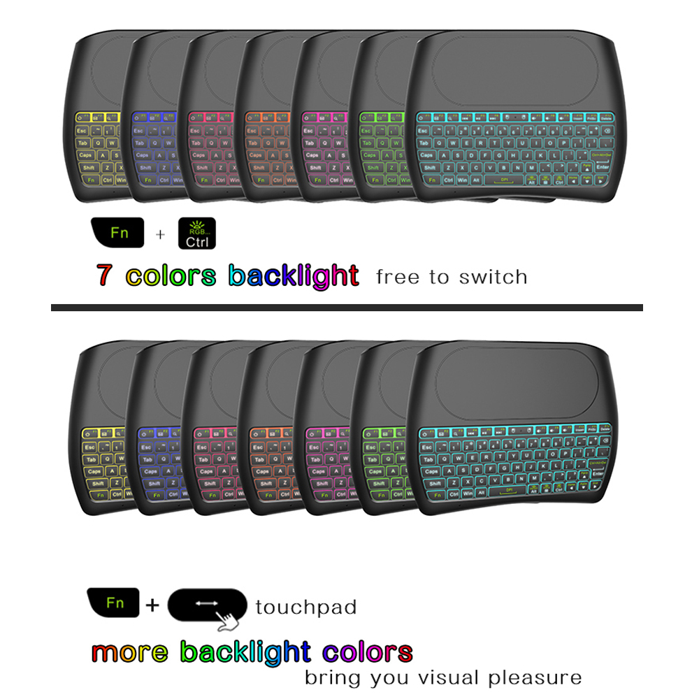 Многофункциональность: Беспроводная мини-клавиатура и мышь-тачпад, 2 в 1 smart combo. 7-цветная подсветка для использования в темное время суток.