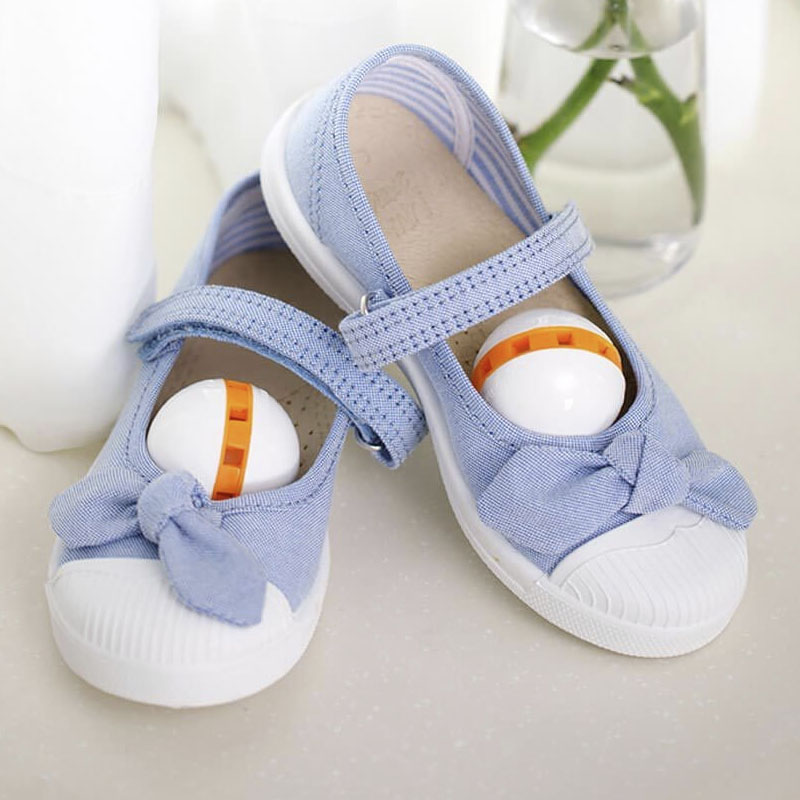 Ношение обуви, например, кроссовок или ботинок целый день приводит к тому, что она вместе с носками набирает влагу, которая способствует размножению микроорганизмов и грибков. Из-за этого появляется неприятный запах, который не удаётся устранить. Круглый шарик-дезодорант для обуви содержит полифенолы, которые ингибируют развитие бактерий и грибков в 99% случаев.