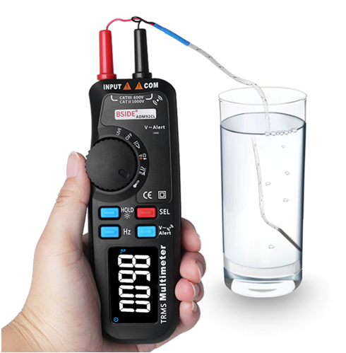 Его можно использовать для измерения напряжения постоянного/переменного тока, постоянного/переменного тока, сопротивления, емкости, частоты, температуры, диода, непрерывности и живого провода.