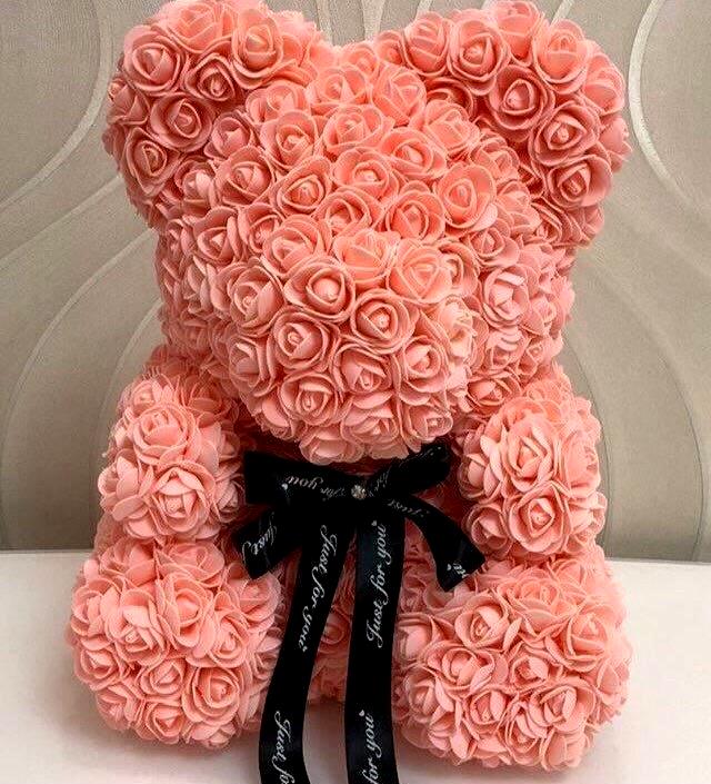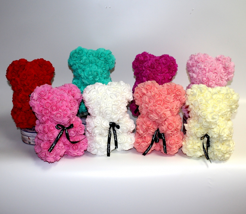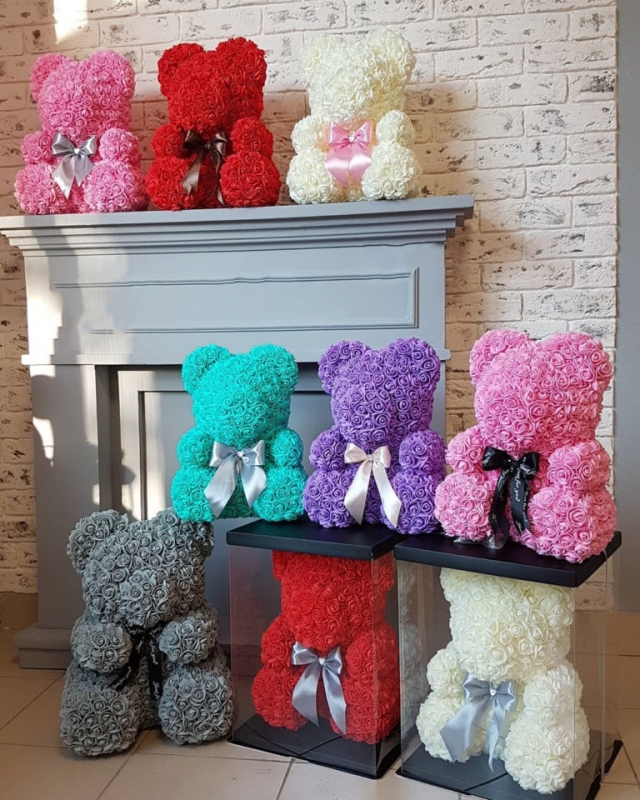 Каждый косолапый — это ручная и кропотливая работа мастера. Благодаря такой технологии изготовления, мишка из роз сохранит свой внешний вид на многие годы, а значит и радость, связанная с ним, продлится долго.
