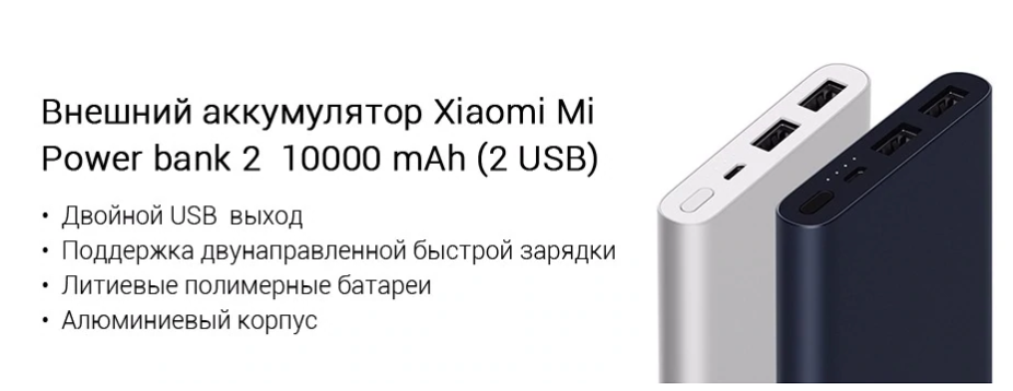 Абсолютно новый 10000mAh Mi Power Bank 2i- это компактное зарядное устройство, оно получило возможность одновременноподключать два телефона с гарантией того, что Ваши гаджеты будут качественно заряжены за минимальный срок.