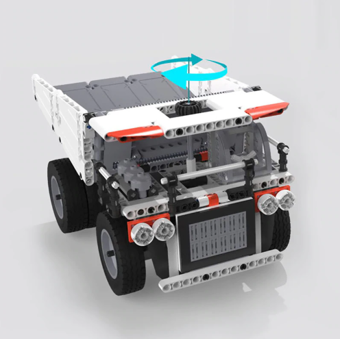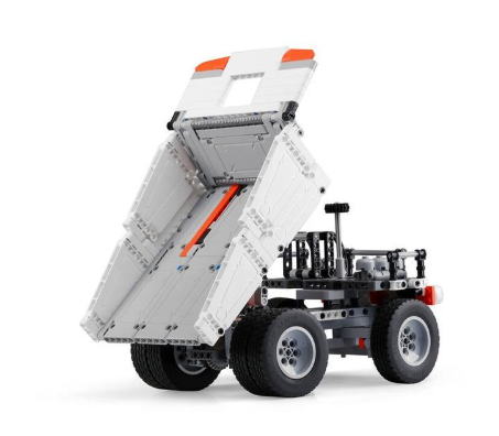 Огромный грузовой самосвал Mitu Building Blocks Mining Truck, по словам производителя, состоит из более чем 500 дателей, а на его сборку придется потратить около одного часа времени (взрослому). Передняя пара больших колес поворачивается при помощи специального «руля», который расположен сверху, то есть им может управлять ребенок без каких-либо сложностей. Задние колеса могут легко вращаться, причем независимо друг от друга.