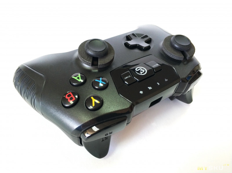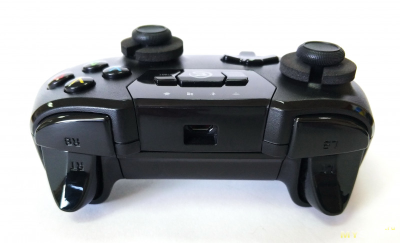 На переднем торце геймпада находится MicroUSB разъём для проводного подключения и следующие элементы управления: