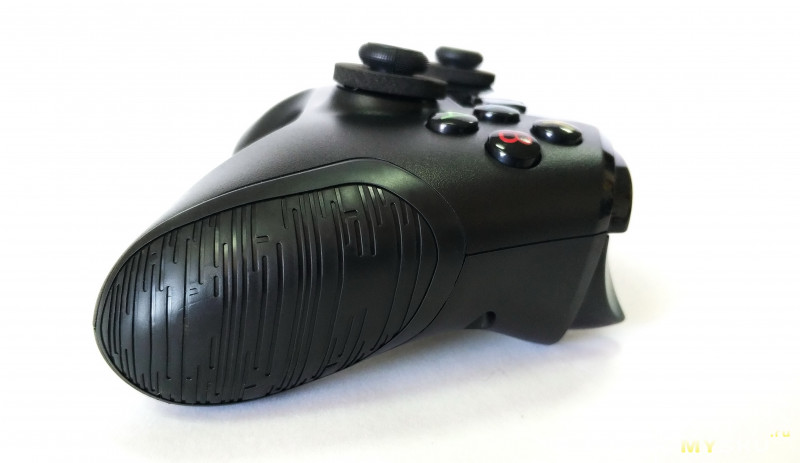 На боковинах геймпада присутствуют резиновые вставки, которые предотвращают выскальзывание геймпада во время игр. За счёт своей эргономичной формы, геймпад удобно сидит в руках.