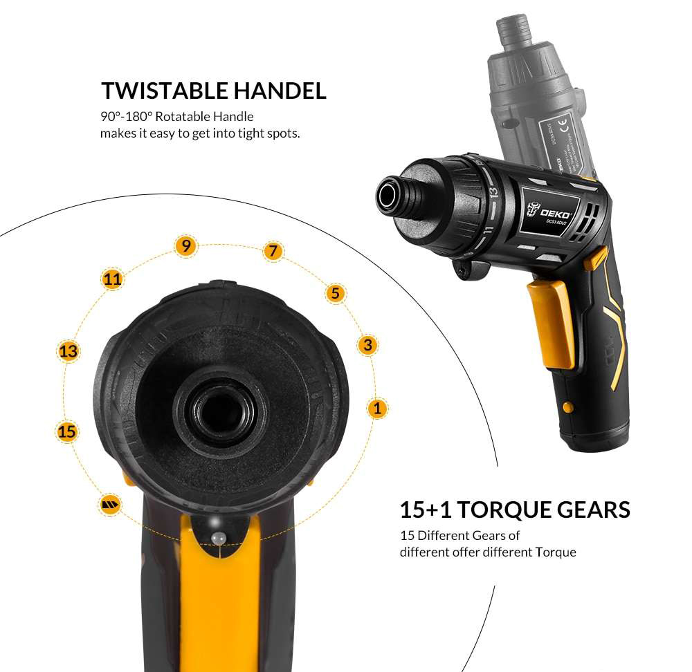 Беспроводная электрическая отвертка DEKO DCS3.6DU2 идеально подходит для сборки мебели, установки мини-жалюзи или других оконных покрытий, а также монтажа хранения и декоративных стеллажей.