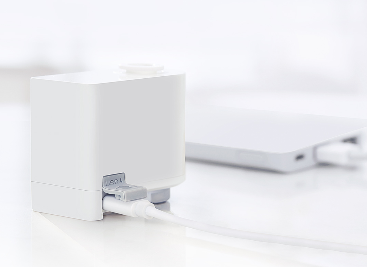 Что у нас внутри? Производитель в точности не раскрывает подробностей. Известно о наличии защиты от коротких замыканий, об использование современных алгоритмов MCU в системе, которые позволяют экономить не только воду, которая подается при открытии заслонки, но и заряд. Ведь насадка работает от аккумулятора. Зарядка осуществляется с помощью MicroUSB порта, который располагается на одном из краев новинки. Он защищен специальным резиновой крышкой.