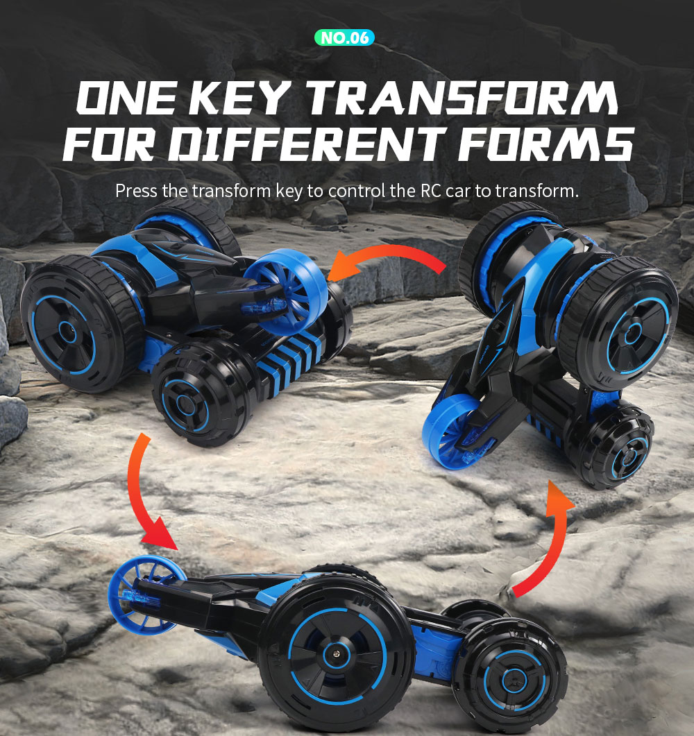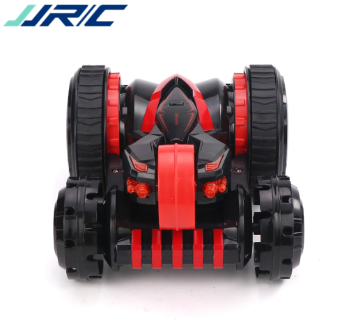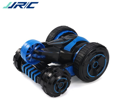 Езда на машине впечатляет. Хорошая скорость, поэтому для маленьких квартир эта машина подойдет, но нужно быть осторожными, иначе все стены будут побиты машинкой. Машинка очень резвая. Управлять ей лучше на улице (в сухую погоду) или в просторном помещении. Вокруг своей оси она вращается на 360 градусов, для этого нужно один стик управления нажать вперед, а второй — назад. Едет машина в основном на 2 ведущих колесах. При троганье она пытается каждый раз перевернуться, 2 других колеса выполняют функцию опоры. Даже при легком нажатии на стики резко трогается и переворачивается. При перевороте опирается на пятое колесо. Таки образом получается 3-х колесный агрегат, на котором также можно прекрасно гонять. Можно опустить это колесико на поверхность, чтобы получилась 5-ти колесная машина. Вождение зависит от опытности управления и вашего желания каким вариантом авто управлять. Кроме того, в машинке при включенном состоянии светятся 3 светодиода.