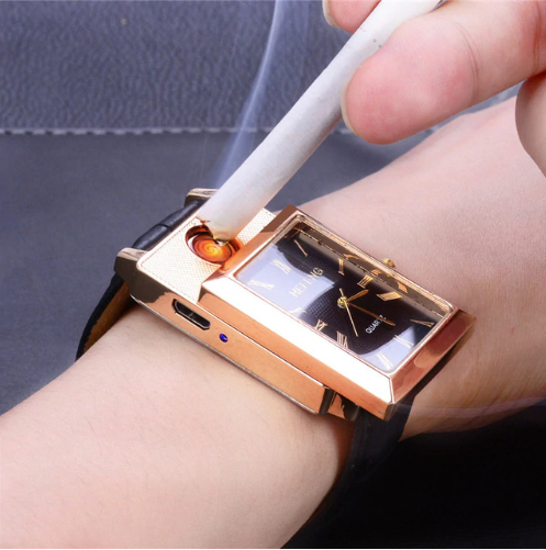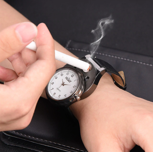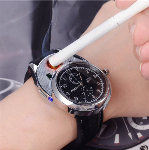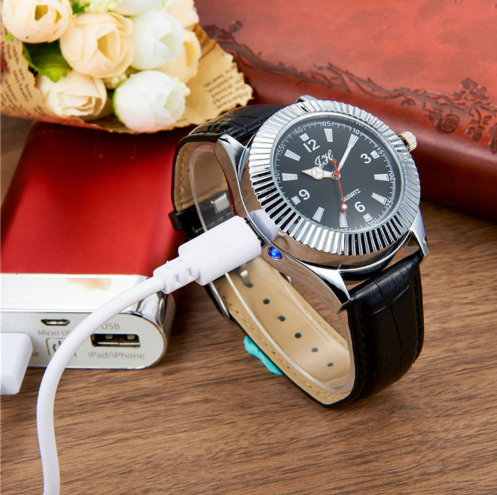 В последнее время в ассортименте многих магазинов Вы можете видеть рост популярности такого сегмента, как портативные USB зажигалки, работающие от встроенного аккумулятора. В большом многообразии данного вида товаров нам удалось найти для вас гаджет, который является не только USB зажигалкой, но и современным и стильным хронометром, выполненном в классическом корпусе круглых часов с аналоговыми стрелками. Мужские наручные часы-зажигалка - это удобное устройство 2 в 1, которое прекрасно подходит в качестве подарка для любого мужчины и на любой праздник. С данными часами больше не нужно носить зажигалку!
