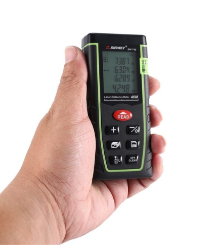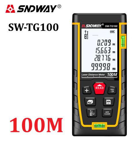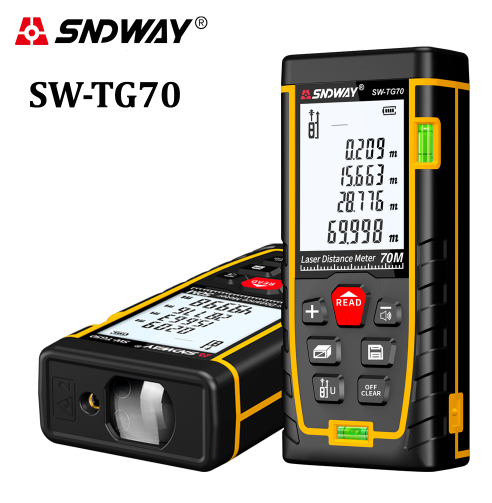 Особенностью дальномера SW-TG50 является высокая точностью измерения расстояний и компактный размер, большой двух-дюймовый экран, два пузырьковых уровня в двух плоскостях, а так-же простота использования. Измерения можно выполнять как от верхней так и нижней кромки рулетки, реализована также функция постоянных измерений с фиксацией максимальных и минимальных значений.