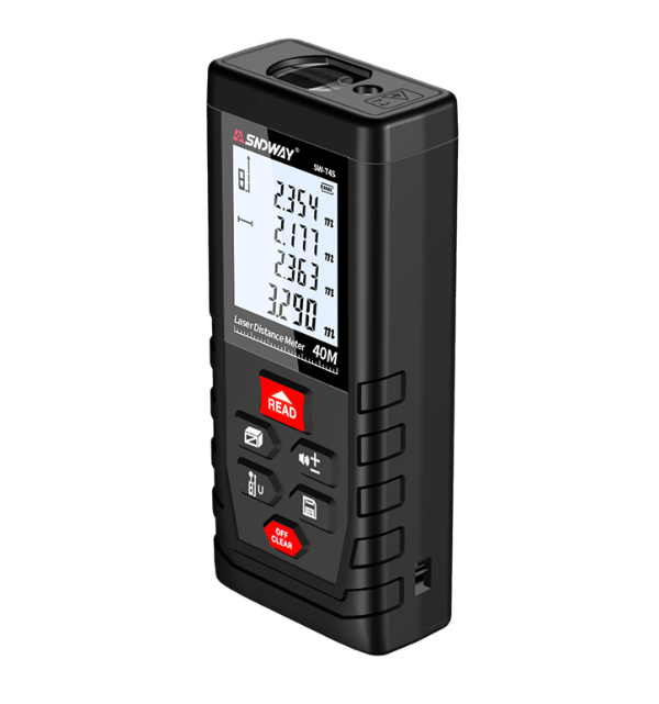 SW-TG50 - лазерная рулетка, с диапазоном измерения от 0,05 до 50 метров, оснащенная функциями расчёта площади и объема, расчета значения высоты на основании измеренного расстояния до основания и вершины.