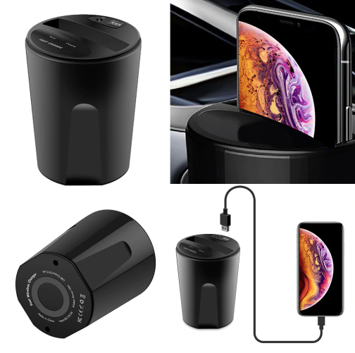 Оригинальный дизайн и элегантная-изящная форма, выглядят как красивая чашка с авто держателем. Просто положите телефон в чашку, чтобы он начал заряжаться. Поставляется с выходным портом USB, вы можете заряжать два телефона одновременно.