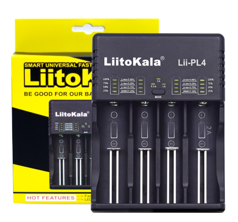 LiitoKala Lii-PL4 - универсальное интеллектуальное зарядное устройство, совместимое практически со всеми цилиндрическими аккумуляторами, тем самым устраняющее необходимость использования нескольких зарядных устройств. LiitoKala Lii-PL4 автоматически распознает литий-ионные, никель-металлгидридные и никель-кадмиевые аккумуляторы, заряжает литий-фосфатные (LiFePO4) аккумуляторы, а так же Li-ION аккумуляторы с конечным напряжением 4,35в.