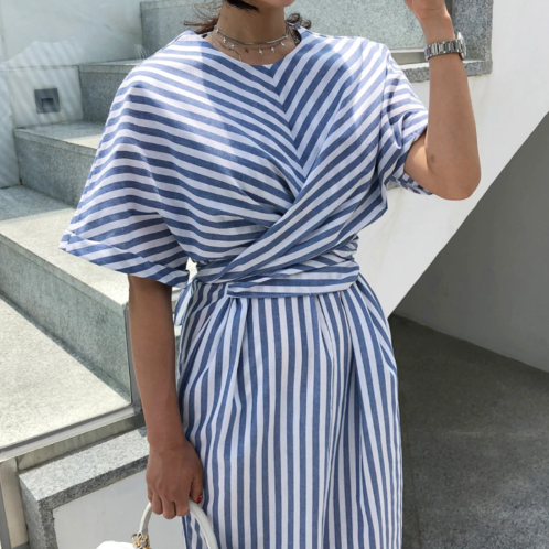 Скидка 50% На женское летнее хлопковое длинное платье с разрезом. Полоска все еще в тренде!
