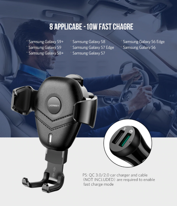 | Название | Автодержатель/зарядка QC3.0 беспроводная для телефона UGREEN Gravity (ED014) |