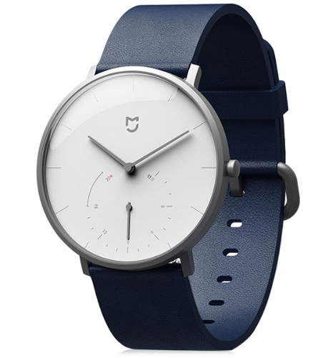 На первый взгляд, ничто в облике этих часов с классическим стрелочным циферблатом не выдаёт смарт-составляющую. Но если копнуть глубже и синхронизировать хронограф со смартфоном по сети Bluetooth, модель сможет дублировать уведомления о звонках и сообщениях, а также вести подсчёт количества пройденных за день шагов. Их фактическое количество отображается на дополнительном циферблате, являющемся неотъемлемой частью основного. Xiaomi Mijia Quartz Watch построены на «раме» из нержавеющей стали, а лицевая сторона часов прикрыта минеральным стеклом. Согласно паспортным данным, корпус носимого гаджета выдерживает давление до 3 атм, что соответствует возможности погружения на глубину 30 м. Однако плавать в часах производитель всё же не рекомендует. Питание смарт-ассистента обеспечивает батарейка CR2430, менять которую понадобится примерно раз в полгода. На полках магазинов часы представлены в 40-миллиметровом исполнении и трёх вариантах расцветки: в белом корпусе с синим ремешком, сером корпусе в сочетании с серым кожаным браслетом, а также чёрном корпусе в комбинации с аналогичным по цвету ремешком.