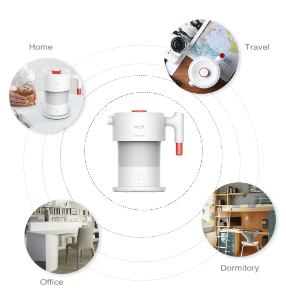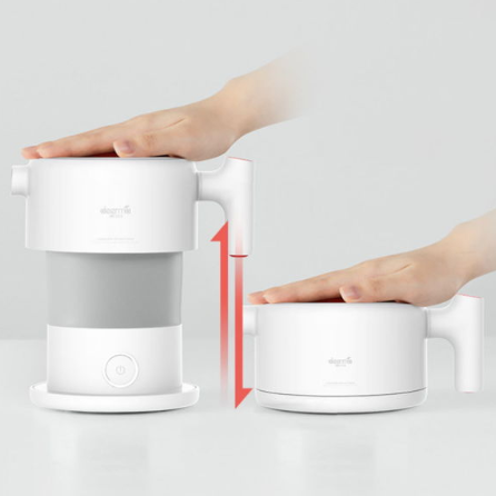 Компактный и стильный чайник, который может сопровождать пользователя в любом путешествии. Чайник выполнен в белом цвете. Его особенностью является складной корпус, благодаря которому возможна удобная транспортировка.