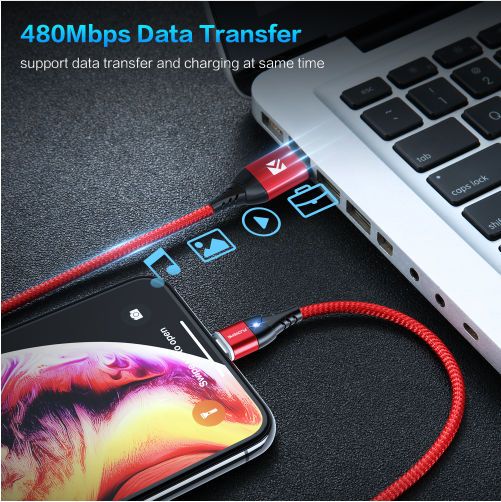 На выбор три цвета и три типа разъемов (Type-C/ Lightning/ MicroUSB). Ток до 3А, световая индикация, поддержка передачи данных