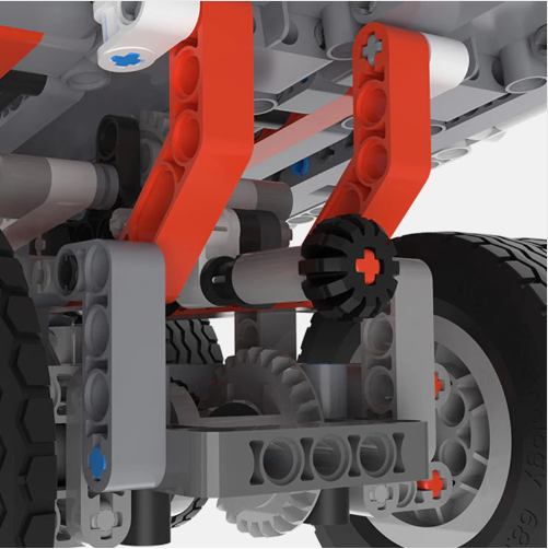 С самого момента ее появления дифференциальная передача не изменялась, а только улучшалась. Для еще более удобного управления самосвалом специально для конструктора Mitu был заказан механизм дифференциальной передачи, обеспечивающий независимое вращение колес. Это вывело систему механической передачи на новый уровень.
