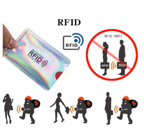 RFID расшифровывается как Радиочастотная идентификация. Эта, основанная на чипе технология, используется во многих отраслях, а также в кредитных картах или паспортах для хранения личной информации, которая может быть передана на сканер RFID. RFID-кражами (часто их называют «скимминг»), называют кражи с использованием сканера для чтения и дублирования личной информации от чьего-либо RFID-предмета без ведома владельца. Не смотря на то, что пока на улице это происходит крайне редко, исследователи безопасности продемонстрировали успешные "атаки" (способы кражи информации из некоторых устройств c RFID-поддержкой) и незаконное использование таких атак может привести к мошенничеству с кредитными картами или краже личных данных. Материал, предназначенный для блокирования RFID-сигналов, включен в подкладку кошелька. В то время как ваши карты или паспорт обернуты внутрь этого материала, сканер не сможет прочитать информацию внутри.