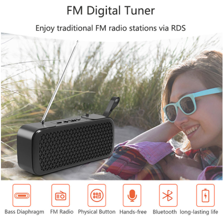 Технические характеристики: * Версия Bluetooth: V4.0 * Рабочее расстояние: 10 метров * Емкость аккумулятора: 1200 мАч * Напряжение: 5 В постоянного тока * Громкоговоритель: (Φ52 мм 4 Ом 5 Вт) * 2 * Соотношение S/N: более 80 дБ