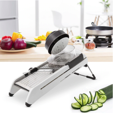 Ручная настраиваемая овощерезка-слайдер с толкателем.Плододержатель обеспечивает надежную фиксацию продукта и предохраняет руки от травм и порезов!