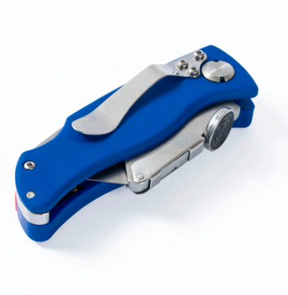 С пятью дополнительными лезвиями, хранящимися в ручке