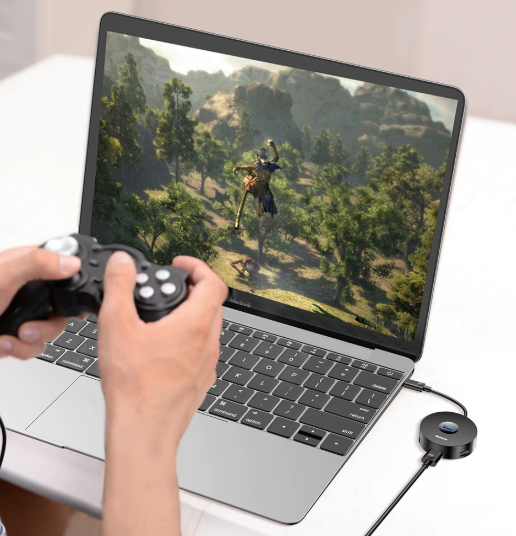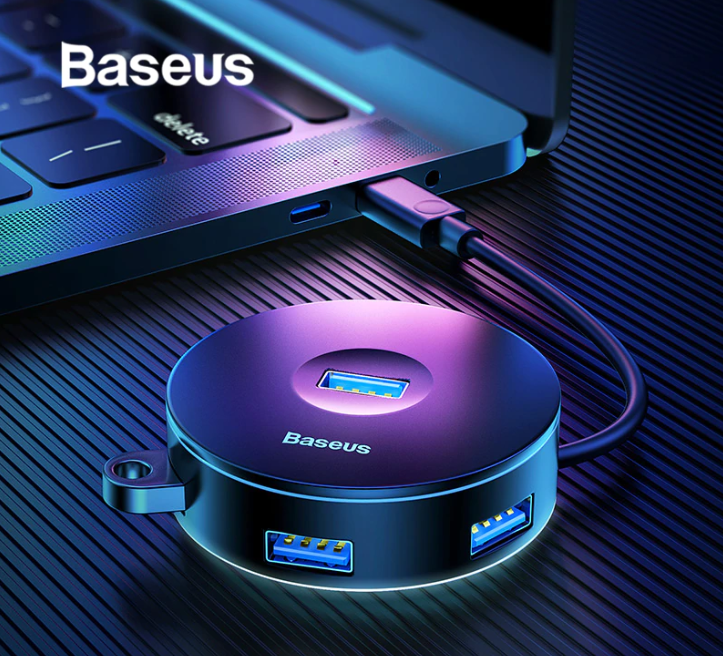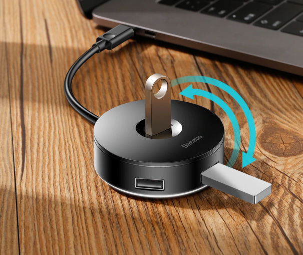В Baseus Round box предусмотрено четыре разъема USB. Модель отличается продуманной конструкцией и высокой эргономичностью, что позволяет задействовать все порты одновременно. Используйте разъемы USB 2.0 для подключения мышек, клавиатур геймпадов и других устройств, где не важна скорость передачи данных. USB 3.0 лучше всего подойдет для присоединения флешек или других накопителей данных - это обеспечит им высокую скорость работы.