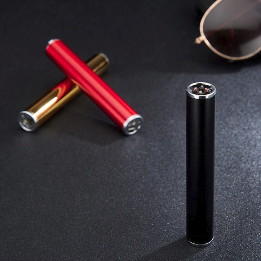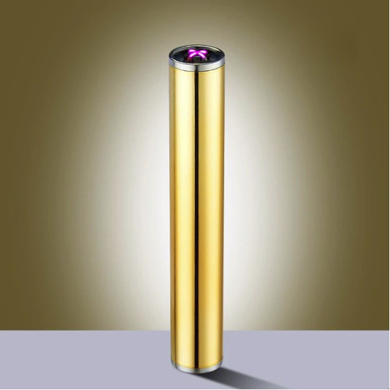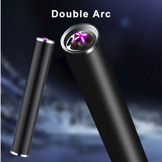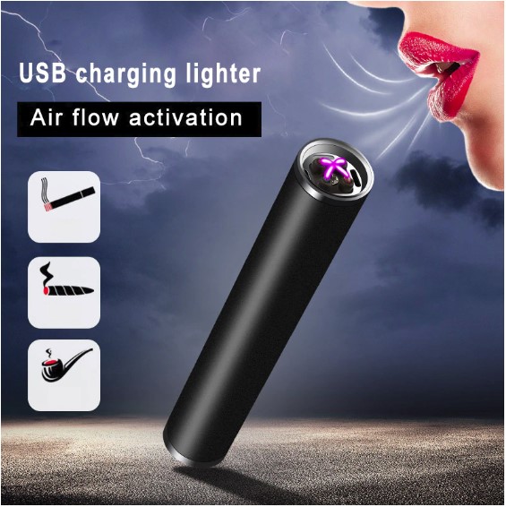 Стильная электродуговая зажигалка (2 дуги) с активацией дуновением, т.е. чтобы активировать розжиг надо подуть на дуги, и они зажигаются секунды на три, достаточное время для прикуривания. Зарядка от юсб. Размер почти с обычную сигарету, можно носить в пачке.