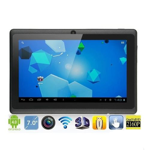 Данный планшет прекрасно подойдёт в подарок, имеет свежую операционную систему Android 4.0, мощный процессор Allwinner A13 с частотой 1.2GHz (с возможностью разгона до 1.5GHz) и графическое ядро Mali 400. Встроено в данную модель 4Gb памяти, с поддержкой карт памяти до 16GB включительно. С этим планшетом, его обладатель всегда будет оставаться на связи благодаря встроенному модулю Wifi и поддержкой внешних 3G модемов. Он не даст заскучать в дороге и даст вам возможность общаться с друзьями не только в социальных сетях, но и онлайн по видео чату, благодаря лицевой камере и микрофону вы без труда сможете использовать программу Skype. Более того планшет Q88 может похвастаться 7-ми дюймовым экраном емкостного типа с мульти-тачем в 5 точек соприкосновения и невероятно низкой ценой.