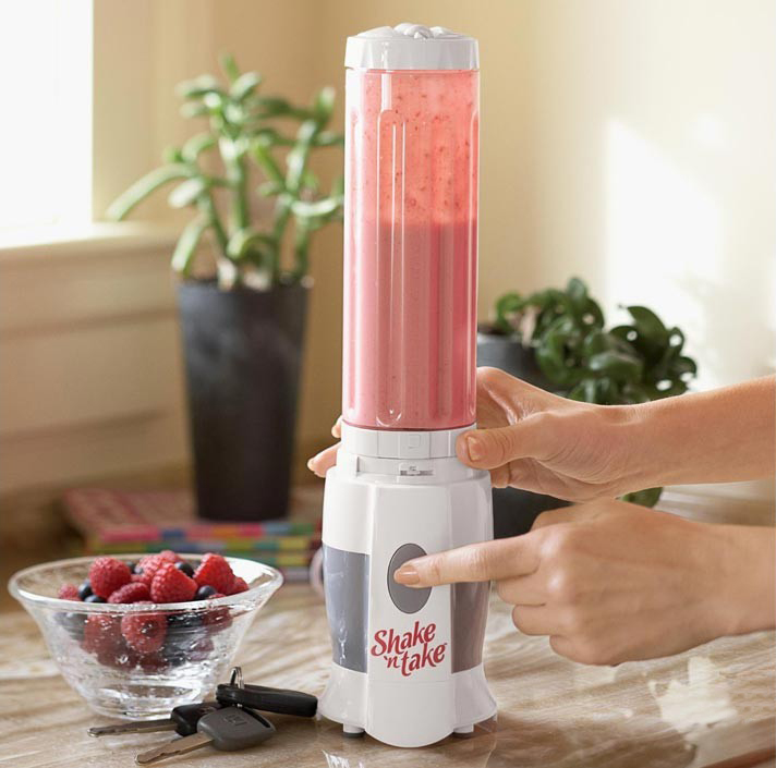 Мини Блендер Shake N Take отлично подойдет для персонального использования. Он способен измельчать кофе, орехи, лед и прочие твердые продукты. Мини Блендер Shake N Take запросто приготовит детское питание. Прибор быстро моется - достаточно промыть проточной водой или положить в посудомоечную машинку.