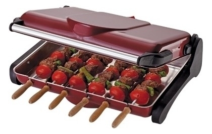 Электрошашлычница - гриль - барбекю - совмещает в себе сразу 3 электроприбора: гриль, шашлычницу и барбекю. 6 шампуров с рабочей длиной 27 см каждый позволяют приготовить за раз порцию шашлыка на целую компанию. Решетка для гриля и барбекю так же очень вместительны. Небольшие габариты электроприбора позволят брать его с собой на любой отдых, а турецкое качество позволит прослужить ему очень долго. Производителем указан срок службы не менее 5 лет.
