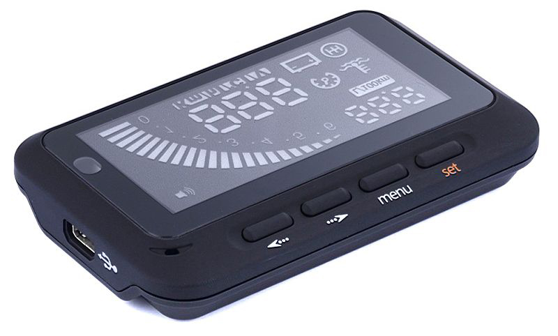 OBD2 Проектор особенно эффективен при езде на большой скорости или в ночное время суток, когда не стоит отвлекаться. Если в подобных условиях водитель будет нагибаться, чтобы увидеть показания приборов, это может привести к аварийной ситуации, в которой он не успеет вовремя сориентироваться и принять нужное решение. В итоге автомобиль может попасть в аварию. Отображая информацию на лобовое стекло в диапазоне видимости водителя, проектор позволяет, не прибегая к лишним движениям, узнать нужную информацию (температура двигателя,скорость,показание тахометра) и обеспечить при этом безопасность.
