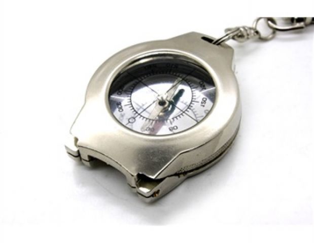 Миниатюрный компас - незаменимая вещь для туриста. А так как он в то же время и брелок, то вы его не потеряете.